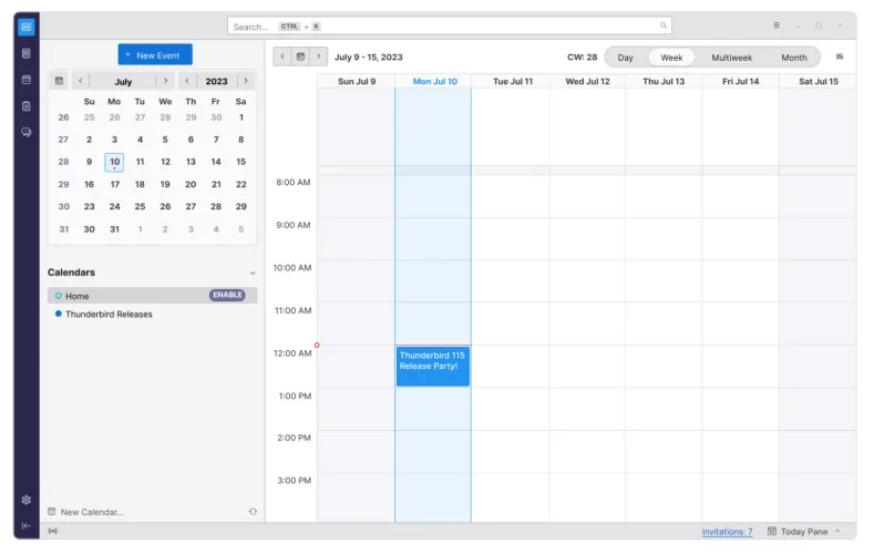 雷鸟内置的日历应用程序(以前需要安装单独的扩展程序)在新版本中也得到了一些关注。它现在提供了你的日历的“迷你月”视图,在每个发生事件的日期上都加了一个圆点–如果你的日历和我的一样拥挤,可能就不会显示任何有用的东西。
