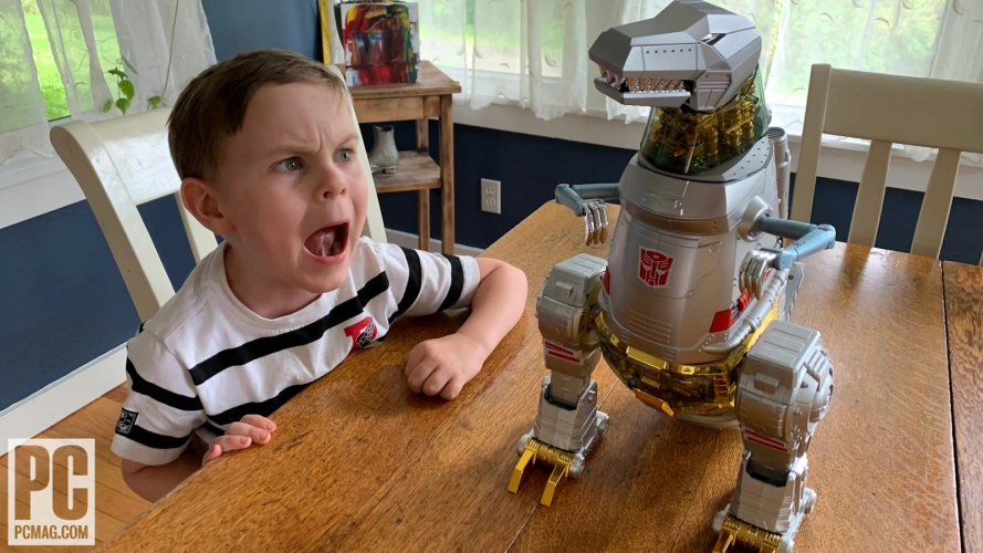 盒子的到来让我五岁半的测试助手帕克斯(代号Paxitron X)更加兴奋。他是一个无所不知的变形金刚,我经常对他喊“我的AM Grimlock”来模仿原始2D动画中那个角色的声音……我强迫他看(在Roku频道上)。一个家不能仅仅依靠CGI变形金刚而茁壮成长。
