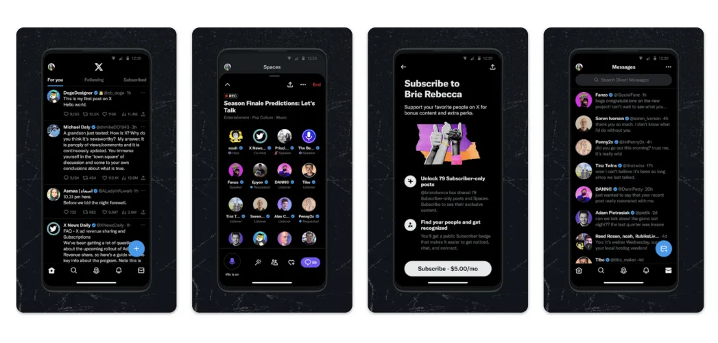 现在,如果你在谷歌的应用商店上搜索Twitter,X应用就会出现。此外,该列表还提供了一个预览,展示了重新命名将如何改变应用程序的设计。例如,应用程序顶部的标志性鸟类标志已被字母X取代。