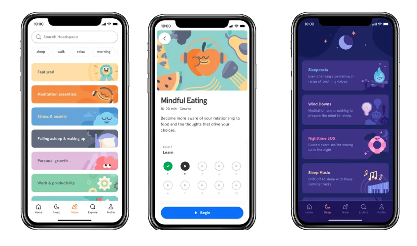 HeadSpace是目前最全面的冥想应用之一。它提供了广泛的课程,主题包括管理焦虑,生产力和创造力,以及个人冥想,例如,考试准备和更多地关注你与技术的关系。渴望睡眠的大学生会得到一整节关于放松、音效、睡眠投射等的内容。这款应用甚至有一个关于镇静有氧运动的部分。所有这些通常是每年69.99美元,但学生计划