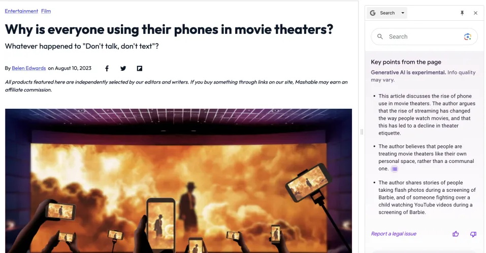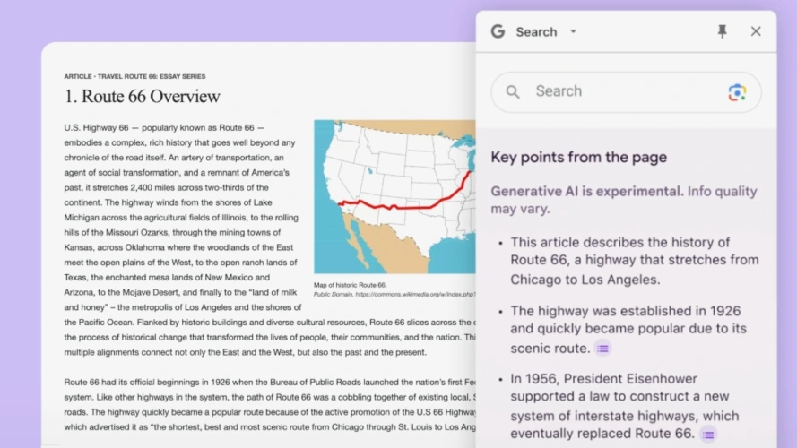 该公司正在进行一项测试,使用人工智能为你在Chrome上查看的网络文章生成关键点。这项名为“浏览时搜索生成体验(SGE)”的功能可以在几秒钟内创建一篇文章的要点摘要,所有这些都只需点击一个按钮。