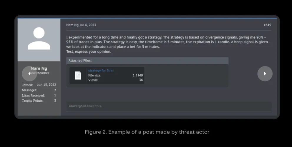在感染设备后,网络犯罪分子会从经纪人账户中提取资金。据Group-IB称,目前尚不清楚金融损失总额。Group-IB还在“至少八个流行的交易论坛”上发现了恶意ZIP档案。