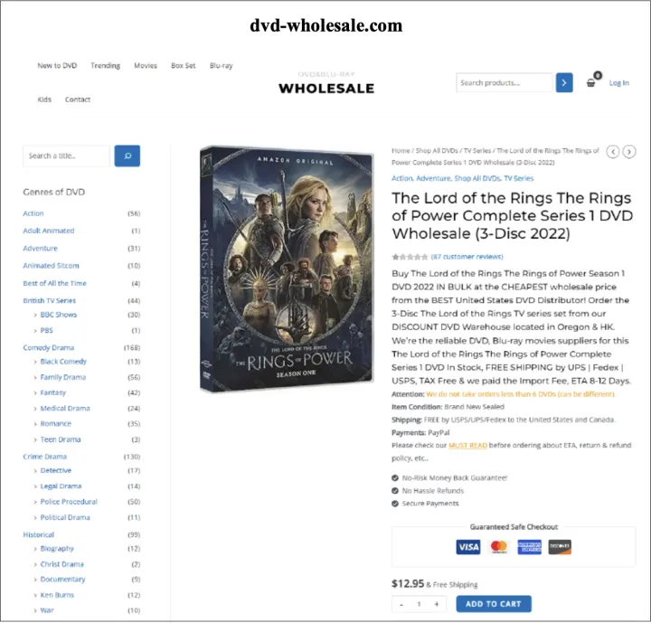 根据诉讼,这些网站的运营商DVD Shelf出售盗版光盘,其中包括Prime Video的电视节目的盗版光盘,例如通过该公司的流媒体服务独家提供的《指环王:权力的魔戒》。