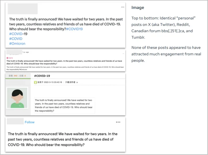 但梅塔说,尽管宣传行动试图制造大量的虚假信息,但影响范围有限。很少有现实世界的有影响力的人重新分享过该组织的内容。这可能是因为该业务的内容受到了糟糕的质量控制的影响。Meta列举了大量的拼写和语法错误,这表明该组织在没有任何校对的情况下从中文自动翻译内容。该操作还会在Quora上发布支持中国的回复,尽管这与这个话题无关。