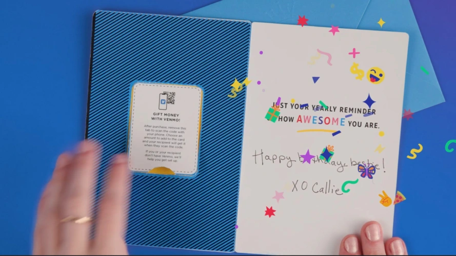 对于缺乏时间或想象力的购物者来说,现金或卡中的支票是一份简单的礼物,但如今谁有现金或支票簿?在你去寻找自动取款机之前,考虑一下Hallmark+Venmo卡片,它可以让你在Hallmark贺卡中包含数字资金。
