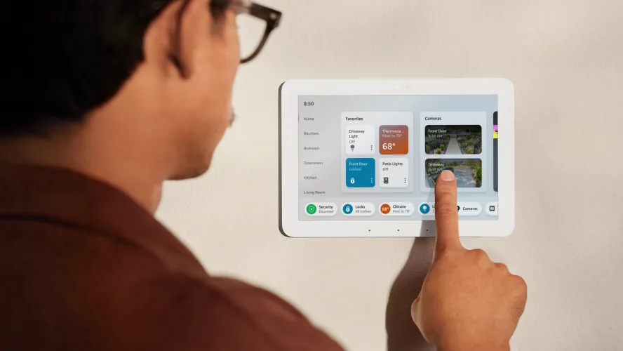 如果你不想让智能扬声器占据你书架或桌子上的空间,而Echo Show 15对你的家来说太大了,亚马逊还展示了一款更小的壁挂式Echo Hub。这款8英寸触控显示屏配备了智能家居仪表板,您可以在其中管理智能摄像头、整理小部件或查看时间。