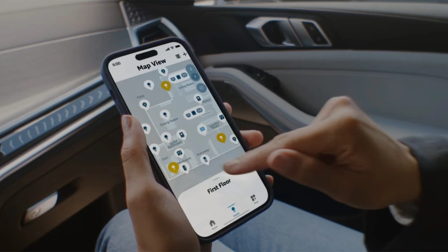 这段视频显示,一名女子打开地图视图,轻敲前门,进入她的铃声门铃。另一个例子是有人选择了一个房间,然后把所有的灯都调暗了。它的工作原理和任何其他智能家居应用程序一样,它只是有一个漂亮的平面图,而不是通常的列表。
