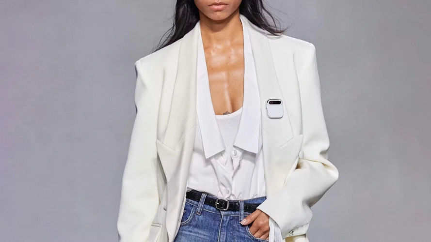 Ai Pin来自Humane,这是一家由一名前苹果设计师和软件工程师创立的初创公司。它第一次出现在5月份的一次TED演讲中,本周前往巴黎参加科珀尼的2024年春夏时装秀,在模特的翻领上发现了它。