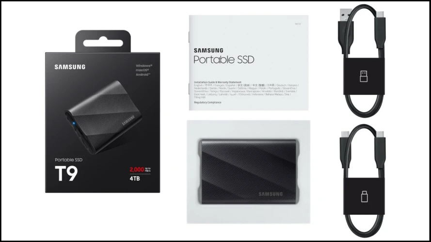 三星今天推出了三款新的外置驱动器,名称为Portable SSD T9。使用USB 3.2代2×2(20Gbps)连接,1 TB、2 TB和4 TB硬盘的读写速度最高可达2,000 MB/秒。它们还非常便于携带,尺寸为88x60x14 mm,重量仅为122克。