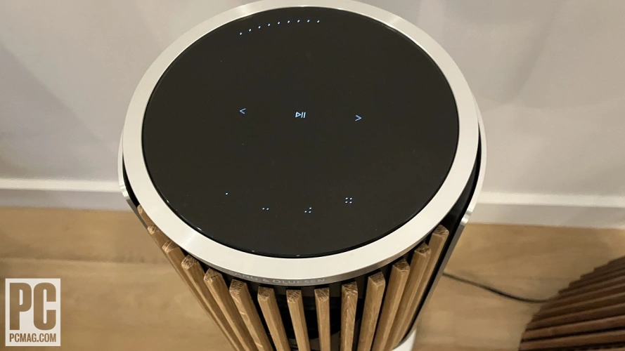 在顶部,有一个玻璃触摸控制面板,带有播放、音量、曲目导航和四个最受欢迎的按钮,您可以将它们编程到电台或各种音乐流媒体服务的播放列表中。圆形面板上半部分周围的光点表示音量。总体而言,这些控件感觉相当灵敏,但在某些情况下,使用B&O应用程序(可在Android和iOS上使用)要合理得多。例如,处理应用程序甚至音乐播放器上的播放要比从沙发上站起来轻敲控制要方便得多。此外,当我轻敲顶部面板时,地板支架似乎允许扬声器轻微反弹,这并没有灌输信心。如果我计划在家里安装这些扬声器,我仍然会选择落地架,但我会使用配套的应用程序来操作它们。