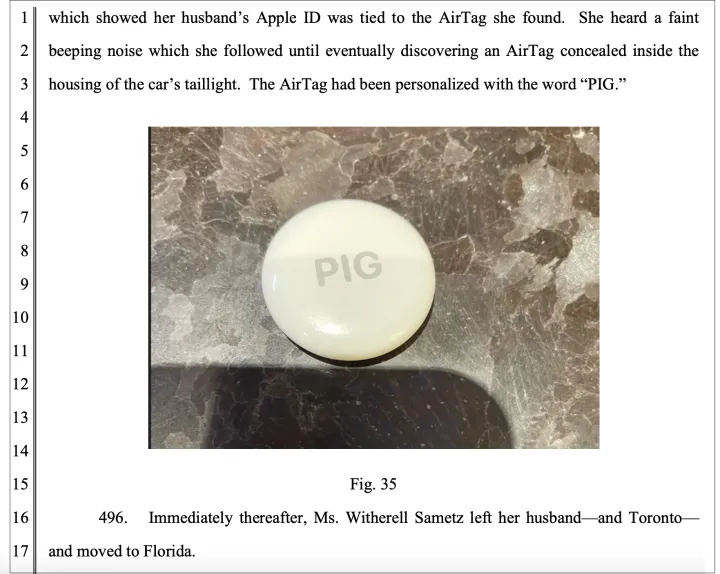修改后的起诉书还包括AIRTAG跟踪和新原告面临的事件。在某些情况下,提供的照片显示了使用的AirTag。