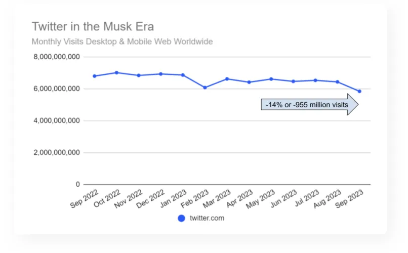 埃隆·马斯克收购了Twitter,希望让它比以往任何时候都更受欢迎,但在他任职期间,这个社交媒体平台的流量反而下降了。