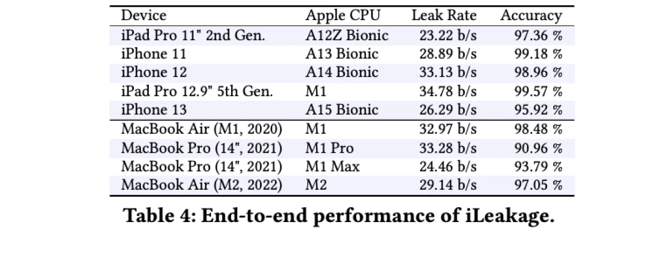 周三,包括佐治亚理工学院网络安全教授丹尼尔·根金在内的一组研究人员发表了一篇论文,并在网站上警告用户注意这一威胁。这个被称为“iLeakage”的漏洞会影响2020年及以后使用该公司基于ARM的A系列和M系列芯片构建的Mac和iPhone。