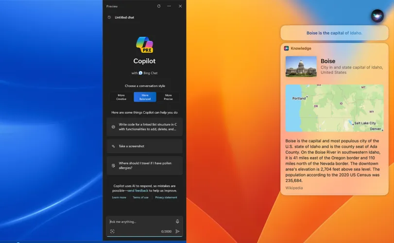 苹果的MacOS保留了Siri作为人工智能助手(这通常没有得到很好的考虑),而微软则完全修改了其针对Windows的人工智能战略,推出了Copilot侧边栏。它不仅可以使用OpenAI的ChatGPT 4和Dall-E 3生成文本和图像,还可以执行一些计算机功能,如更改设置或截图。然而,Siri目前在控制系统设置方面更强大,可以用于智能家居控制。Windows的Copilot还不具备唤醒功能。