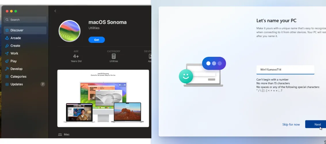 微软允许你通过语音安装操作系统,并根据你是将电脑设置为个人用途还是商业用途来区分这一过程。你现在可以通过三种不同的方式安装MacOS:通过系统设置(在MacOS Sonoma之前称为系统首选项)、Mac应用商店,或者通过在Safari中下载磁盘镜像。这两个操作系统都会自动识别并安装标准硬件外围设备的驱动程序,例如鼠标、键盘和存储设备。