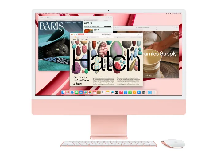 搭载M3的新款24英寸iMac起价1,299美元,配备8核M3处理器、8 GB内存和256 GB固态硬盘–有蓝色、绿色、粉色和银色可供选择。配备10核GPU的增强型机型起价1,499美元,有蓝色、绿色、橙色、粉色、紫色、银色或黄色可供选择。购买时还可以选择其他配置,iMac还附带魔术键盘和魔术鼠标配件。