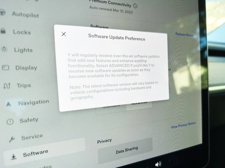 特斯拉通常每四周发布一次新软件。如果您想以更快的速度获得软件更新,请转到控制>软件>软件更新首选项。默认情况下,你的汽车将被设置为标准,但如果你想更快获得更新,点击高级选项,一旦他们准备好为你的型号配置做好准备,就会收到空中更新。根据我的经验,它们在标准部署周期之前大约两周出现。(请注意,这不会让您注册参加特斯拉的早期访问计划,以进行FSD等新功能的Beta测试。)