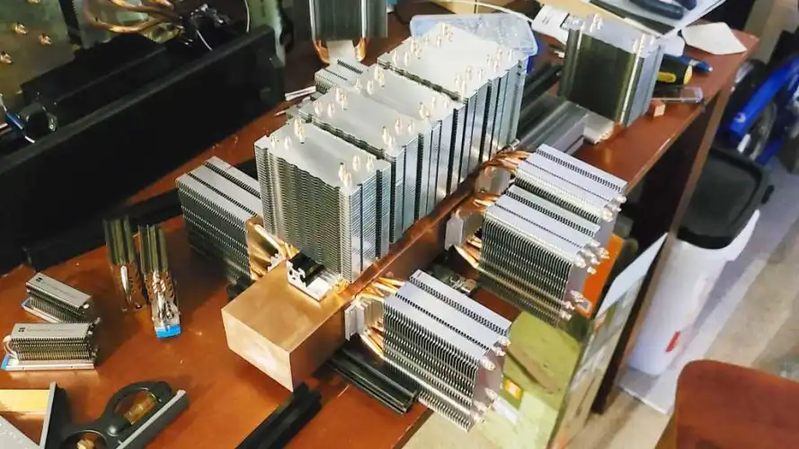 这篇帖子概述了一个人试图让高端显卡在没有任何移动部件的情况下运行,移除了库存的散热罩,取而代之的是一个由铜和钢组成的弗兰肯斯坦怪物。无风扇科技的被动冷却爱好者发现了这个帖子(通过汤姆的硬件)。这位用户说,他们的装置是由一根坚固的铜条制成的,宽一英尺,高两英寸,深三英寸,上面看起来至少附加了11个额外的CPU散热器。当然,没有粉丝。它们不是永久粘贴的–该项目仍处于规划阶段。