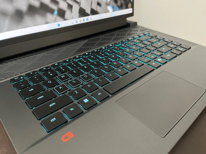 键盘上唯一向游戏玩家点头的是WASD四重键上的轮廓和粗体字母。否则,它就是一个标准键盘。这些钥匙太软了,感觉有点太软了。我更喜欢更坚定的手感和更快的反应。键盘没有数字键盘,取而代之的是一列音量控制键。我会争辩说,这些比塞进数字键盘更有用。在本专栏中还有一个麦克风静音键,但没有关闭网络摄像头的键。如果没有物理快门,Dell G16在不使用相机时无法确保您的隐私。没有数字键盘也意味着你可以得到四个全尺寸的箭头键,这一直是很受欢迎的。