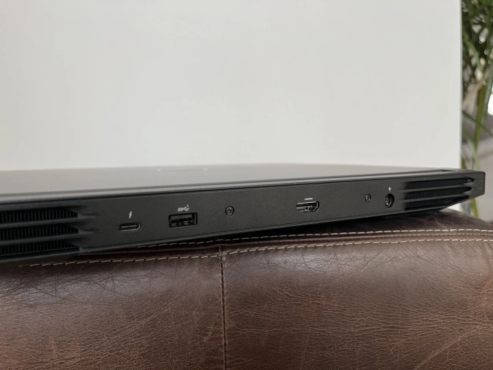 戴尔G16提供了一系列有用的端口选择,但我希望看到第二个迅雷4端口,并乐于用三个USB Type-A端口中的一个来交换它。这款笔记本电脑配备了一个桶式充电器,因此在给系统充电时,至少可以让迅雷4端口保持空闲。