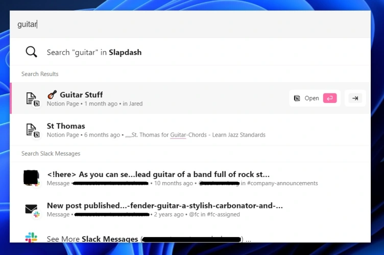 不幸的是,slapdash不能搜索本地的Windows文件,所以你不能用它来完全取代Windows Search或PowerToys Run。尽管如此,其跨网络应用程序和服务的搜索能力使其成为对微软自己的搜索工具的极大补充。