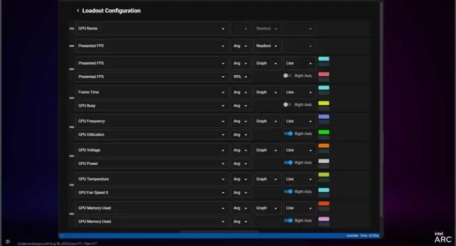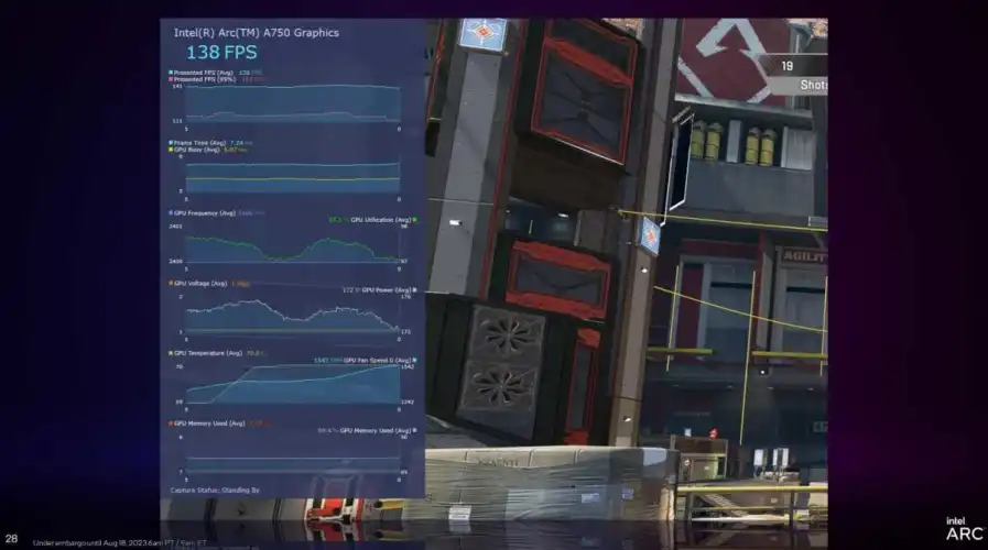 今天就结束了。英特尔外观精美的PresentMon Beta应用程序(提供覆盖和窗口两种形式)提供了您在现代GPU测量工具中预计会看到的所有常见图形、数据和测量结果-内存使用率、帧速率和时间、电压、频率等-除了新的GPU繁忙指标。