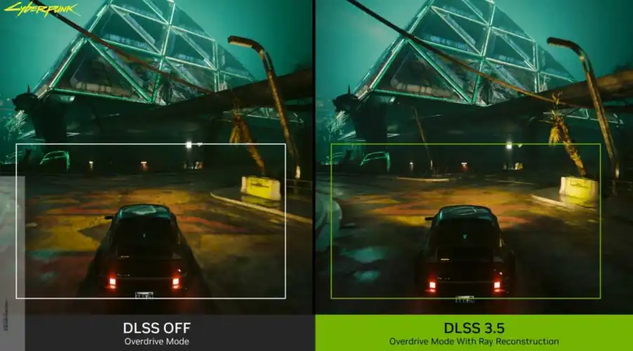DLSS3提升了游戏的性能,而DLSS3.5的《S射线重建》则旨在提高高端光线追踪游戏的视觉质量,特别是通过将NVIDIA的人工智能模型开启一个叫做“去噪”的关键过程。