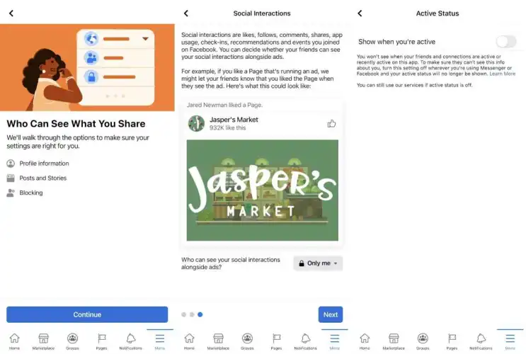 隐藏你的状态:要阻止朋友看到你在Facebook上的活动状态,打开这款移动应用程序,进入设置>活动状态,然后取消选中“当你活动时显示”。(在网络上,你可以通过点击信使图标,选择“…”来找到这个选项按钮,然后点击“活动状态”。只需注意,当此功能被禁用时,您也将无法看到好友的状态。