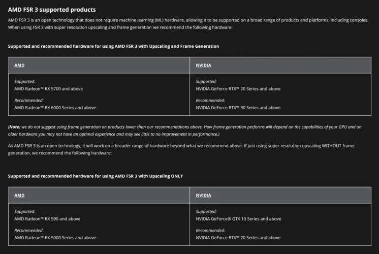 AMD FSR 3.x也有一些限制,但这些限制只影响使用流动运动帧和自然模式的中间图像计算,正如制造商的官方常见问题解答所揭示的那样。