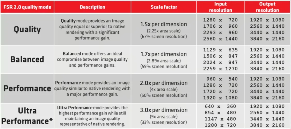 AMD已经为此发布了一个官方表格,它仍然指的是AMD FSR 2.x,但也可以用于AMD FSR 3.x和Nvidia DLSS 3.x。在实践中,预设的质量、平衡和性能占上风,而超级性能通常不再用于游戏。