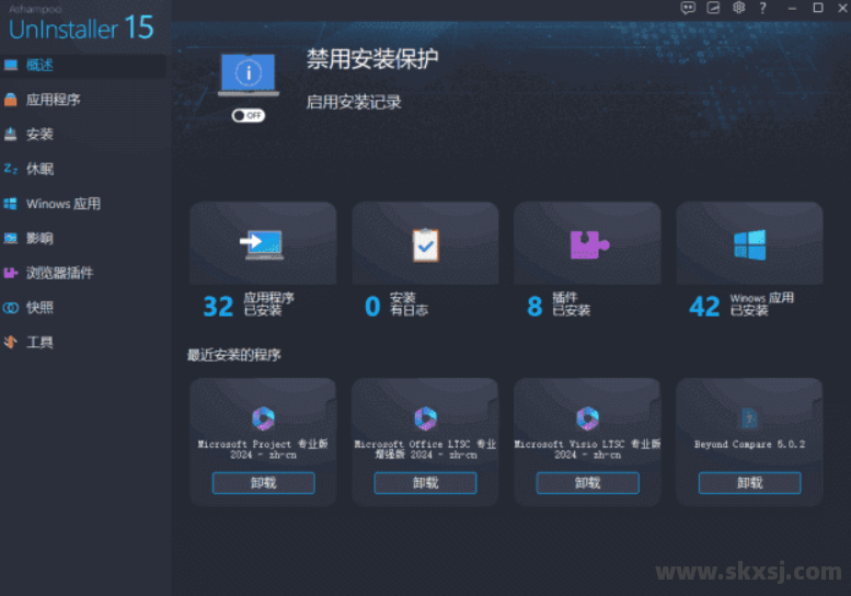 安装追踪:Ashampoo UnInstaller 可以记录下每个软件的安装过程,并创建安装日志,用户可以根据需要随时查看。