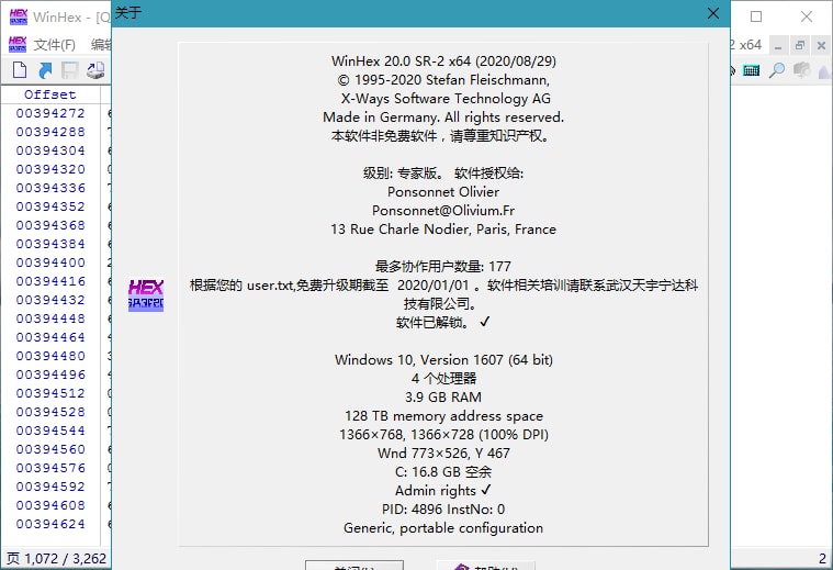 X-Ways WinHex中文版是一款全球知名的计算机取证和数据恢复软件,同时也是一个功能强大的十六进制编辑器和磁盘编辑器。它广泛用于取证搜集、数据恢复、文件分析、底层数据处理和安全领域。使用WinHex,您可以检查修复各种文件和存储介质的损坏和数据丢失问题,进行Hex与ASCII编码的编辑和修改,进行多文件字符搜索与替换,自动搜索和编辑磁盘扇区(支持FAT16、FAT32和NTFS),进行文件数据比对分析,以及进行RAM编辑等。WinHex还具有发现其他程序隐藏文件和数据的能力。作为一款功能强大的16进制编辑器,X-Ways WinHex深受计算机取证和数据恢复领域的专业人士青睐。