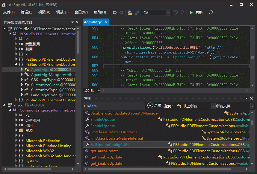 dnSpy,堪称.NET反编译神器。它是由ILSpy发展而来的免费开源的基于.NET语言的反编译与调试工具,用于实现.NET程序集逆向工程,可以对.NET开发的EXE和Dll程序集反编译为C#源码,支持断点调试和编辑C#代码,该项目包含反编译器,调试器、代码编辑器等功能,可以通过编写扩展插件的形式轻松实现功能扩展。该工具使用的dnlib读取和写入程序集,可以处理包含混淆代码的程序(如恶意程序)而不会崩溃。