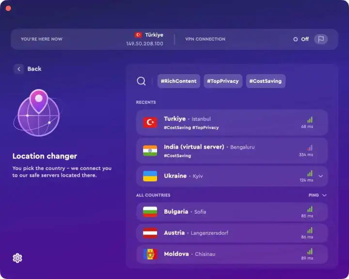 如今,阿根廷、印度、土耳其和乌克兰的VPN价格往往最便宜。巴西、埃及、巴基斯坦、尼日利亚和菲律宾也可以做得很好。有时最低的价格可能是在一个很难找到VPN的国家,而且一些服务在不同的国家有不同的要求,所以并不总是可能利用最好的价格。在这种情况下,只需继续前进,尝试列表上的下一个国家。