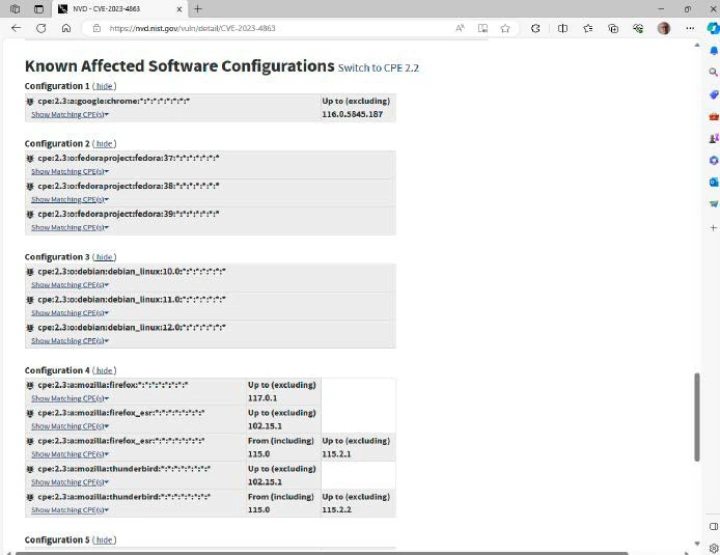 就在几个小时后,该公司纠正了自己的错误,并解释说,除了Chrome之外,还有其他一些应用程序也存在漏洞。事实上,漏洞并不存在于浏览器本身,而是存在于程序打开WebP图像时访问的开放库libwebp中。该库还被许多其他程序使用,包括Chrome、Firefox和Edge,以及Gimp、Inkscape、LibreOffice、Signal、Thunderbird和1Password等应用程序。