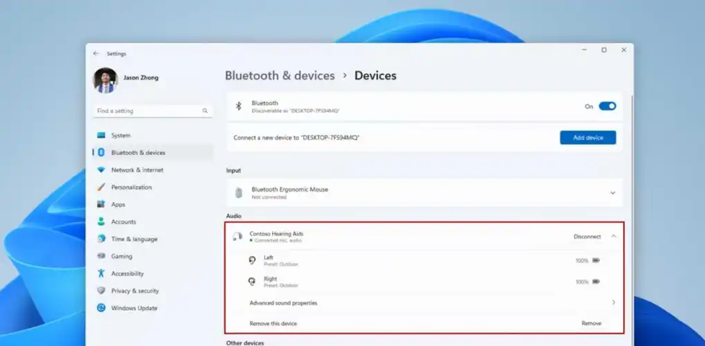 助听器增强:微软去年10月开始支持蓝牙低能量助听器。现在,微软正在为设置>蓝牙和设备添加选项来控制它们,比如预设和控制环境声音,甚至是在每个设备的基础上。还可以监控电池续航时间。不过,他们需要PC和助听器来支持蓝牙LE Audio。