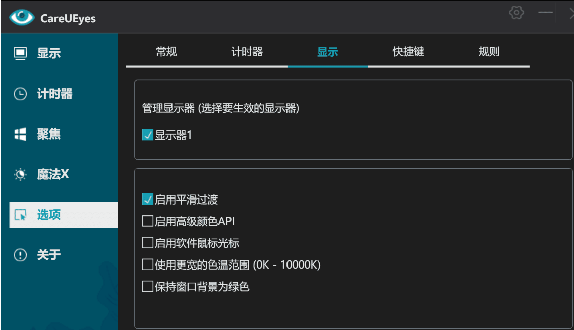 CareUEyes 是一款用于调节屏幕亮度和颜色的软件,旨在保护用户眼睛的健康。它提供了多种功能和特点,使用户在使用电脑时能够更加舒适和健康。