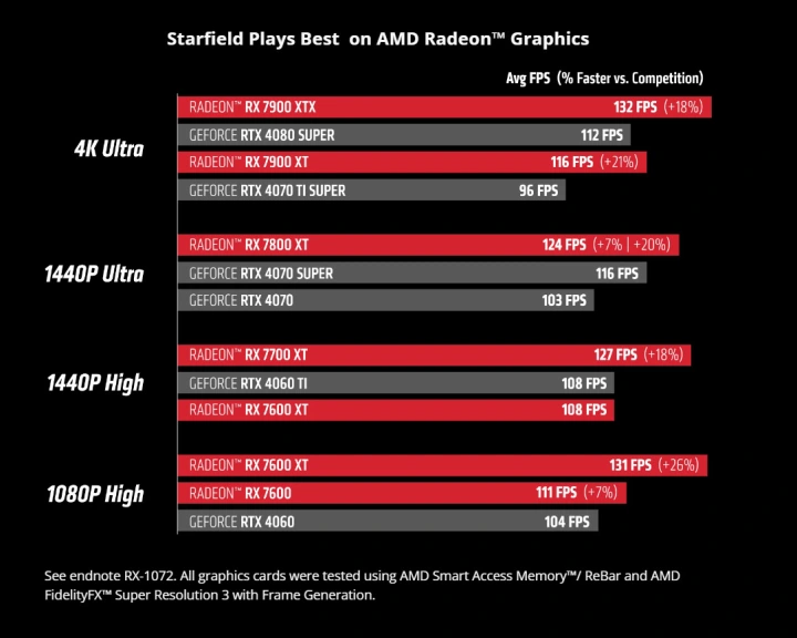 自从发布以来,Starfield一直是AMD图形技术的展示窗口,所以让人有点奇怪的是,该公司花了这么长时间才推出最新、最强大的超级采样升级版本-FSR 2在游戏的初始版本中可用。FSR 3通过帧生成技术改进了它的前身,并且与NVIDIA的解决方案不同,它可以在任何现代显卡上使用,无论供应商是谁。FSR 3最近有一些坏消息,被从新的提前发布的手工艺游戏Nightingale中删除。