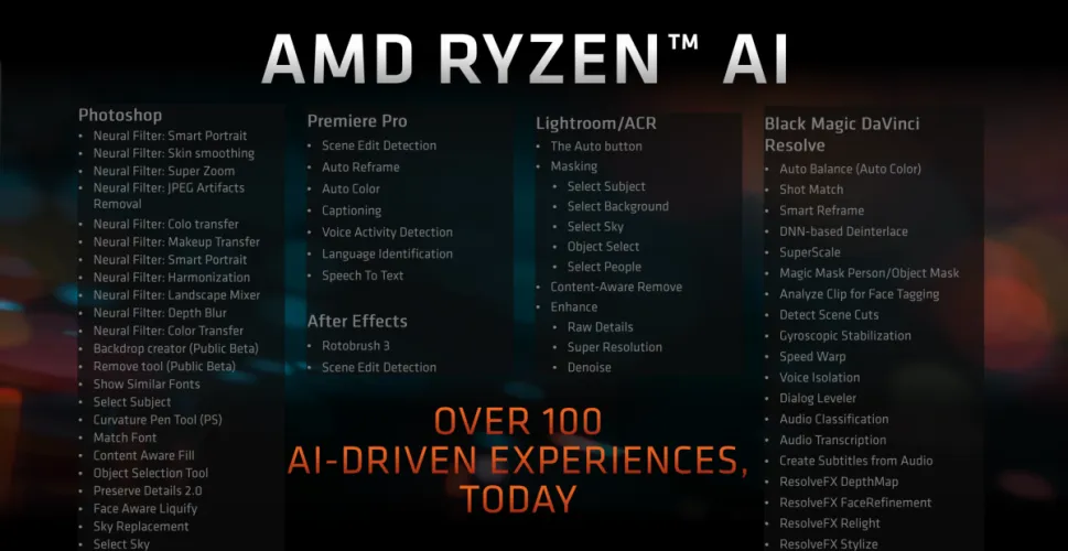但这是当地人工智能沙漠中的一片绿洲。AMD和英特尔都在吹嘘他们的芯片在像Llama 2这样的人工智能语言模型上的性能。对于那些已经尝试过人工智能聊天机器人并熟悉其中一些不同模型及其工作原理的人来说,这是有意义的。例如,AMD专门列出了哪些应用程序利用了它自己的NPU,并将其命名为Ryzen AI。