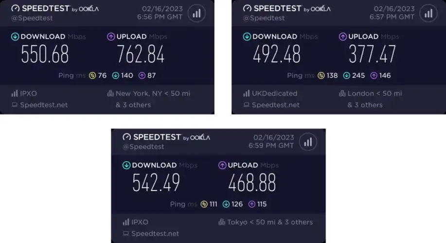 为了测试VPN的速度,我们对其在全球六个不同国家的服务器的连接速度进行了多天的比较。然后,我们将这些连接速度与未使用VPN的基线互联网速度进行比较。我们的比较包括下载和上传速度。