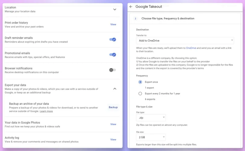 值得称道的地方:Google Photos让你可以轻松下载所有照片和视频的副本。它还可以定期将它们直接备份到其他云存储服务。以下是操作方法: