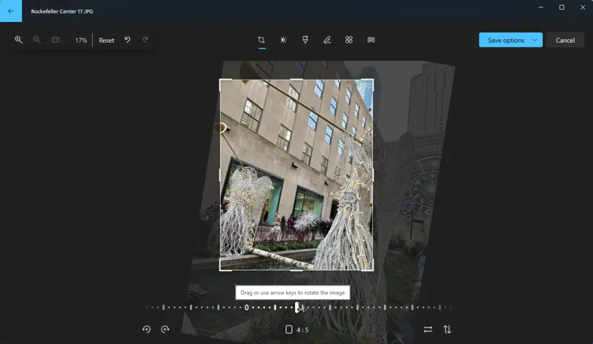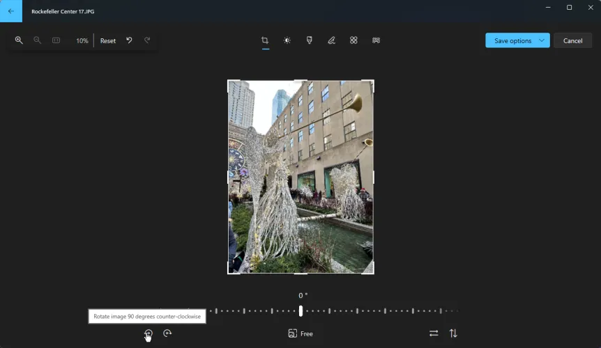 首先,假设照片出现在错误的方向上。在这种情况下,您可以将其在任一方向上旋转90度。单击底部的第一个旋转图像图标,将其逆时针旋转。单击第二个旋转图像图标,将其顺时针旋转。