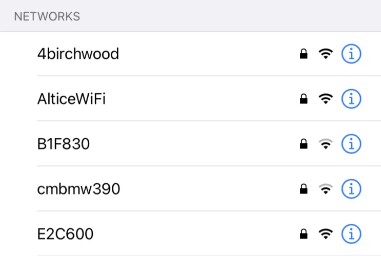 当你想选择一个Wi-Fi热点登录时,试着找到一个让你被锁在门外的热点。你没看错。通常,如果你看到锁图标,这意味着你无法访问。零安全的网络旁边没有锁图标。在iPhone上,如果你点击一个不安全的网络–即使是你自己在家里的网络–你会收到一条警告,上面写着安全建议。