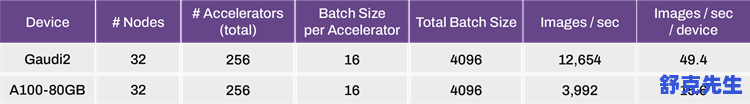 另外如果说采用32批量单元的设置下,英特尔Gaudi 2训练速度为每秒12654张,而A100-80GB则为3992张,英特尔计算卡是A100-80GB计算卡的3.17倍,还是相当给力的。当然Stable Diffusion作为现在最为流行的模型,各大计算卡厂商都愿意花精力去优化,而且更为重要的是英伟达的AI生态已经做得十分地完善,并且英伟达B100什么水平还不知道。要是英特尔Gaudi 2训练计算卡真这么给力,那现在AI市场也不会被英伟达所垄断了。