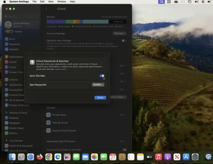 要在装有MacOS Ventura或更高版本的Mac上启用iCloud Keychain,请打开系统设置。单击您的名字并选择iCloud,然后选择密码和钥匙链,并打开Sync This Mac开关。如果您的Mac安装了MacOS蒙特雷或更早版本,请点击Apple图标,然后选择系统首选项。点击Apple ID图标并选中KeyChain框。