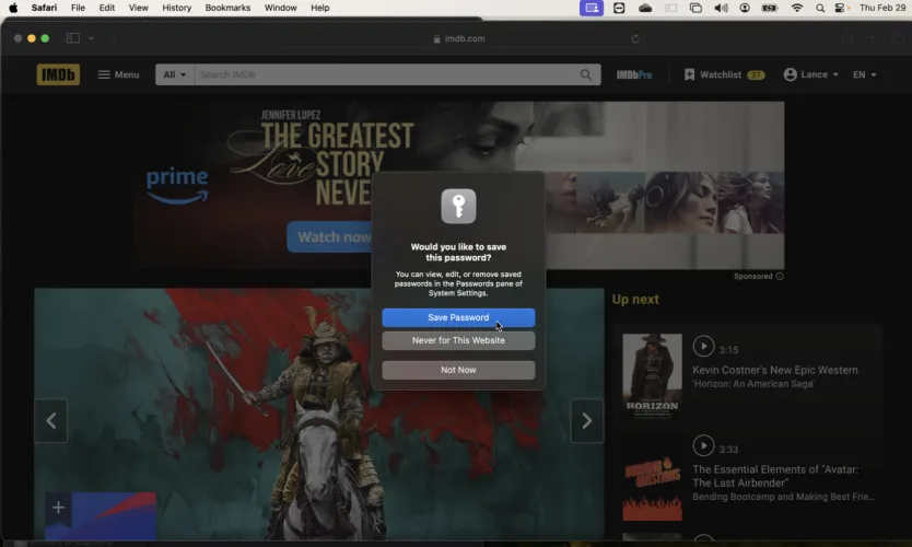 这一过程在Mac上也是一样的。要保存现有帐户的密码,请在Safari中启动该网站。在相应的字段中键入您的用户名和密码并登录。系统会提示您是否要保存此密码。单击保存密码。