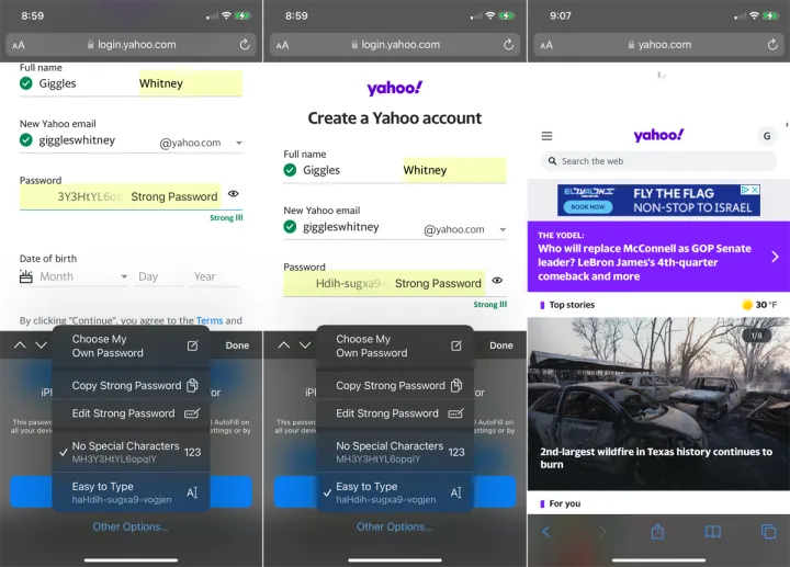 然后,您可以选择自己的密码、从其他来源复制密码、编辑建议的密码、排除特殊字符或选择易于键入的密码。完成后,点击使用强密码。您已登录到该网站,帐户凭据存储在iCloud钥匙链中。