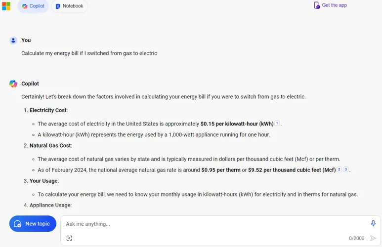 若要提出与先前请求无关的其他问题,请单击蓝色的“新建主题”按钮,然后撰写新问题。如果你想从使用Copilot的时间中获得更多,看看我们关于下一步要尝试什么的建议。