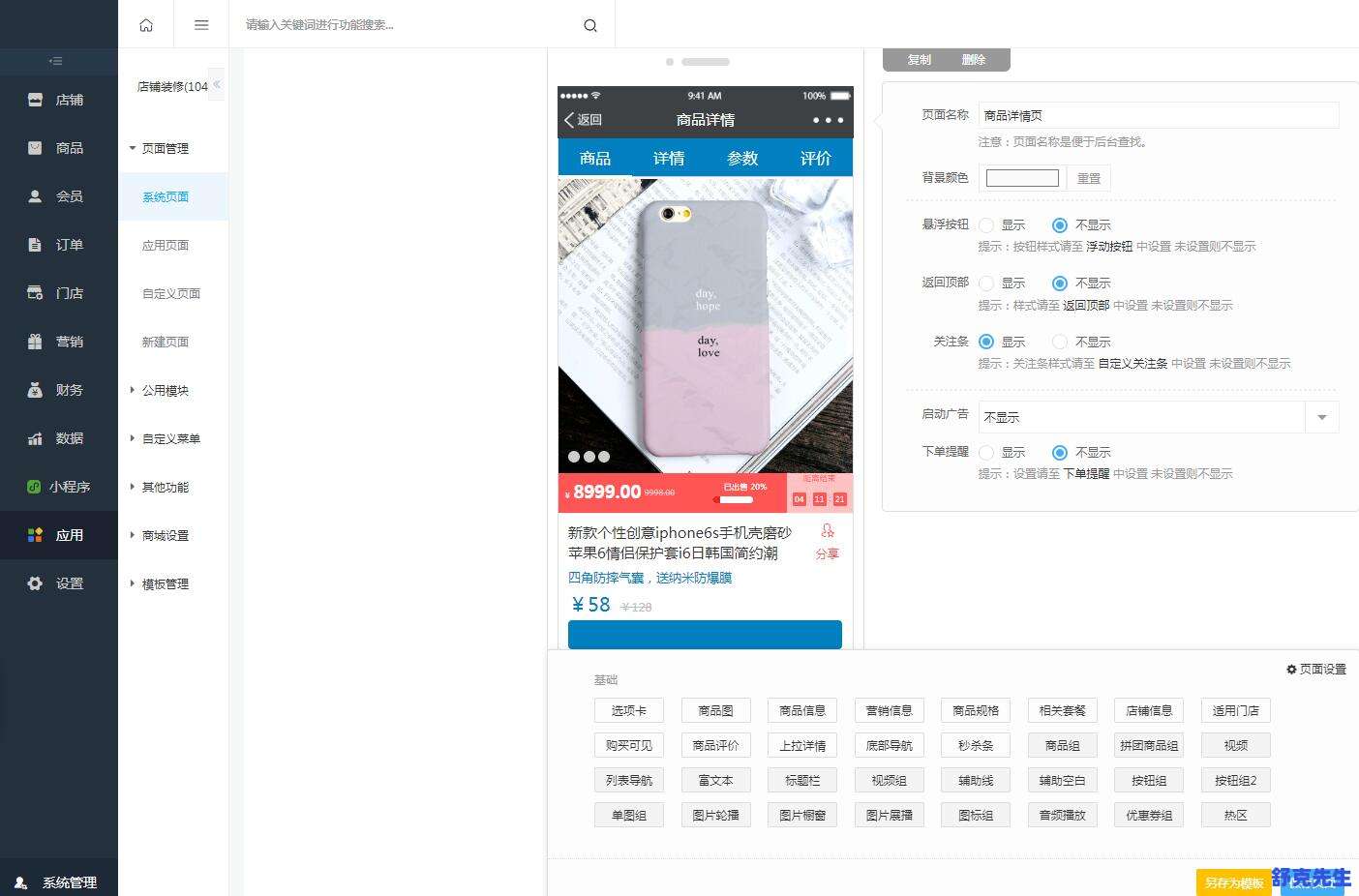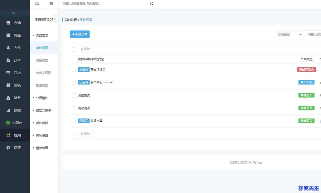 在店铺装修里面可以创建页面,控制导航,等通用操作;