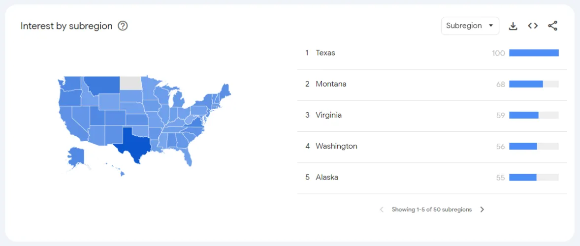 与犹他州一样,德克萨斯州的行动也引发了人们对虚拟专用网络(VPN)的兴趣增加。随着人们试图绕过禁令,“VPN”在德克萨斯州的谷歌搜索量立即飙升。我自己查了一下谷歌趋势,是的,德克萨斯州现在对“VPN”表现出了百分之百的兴趣。